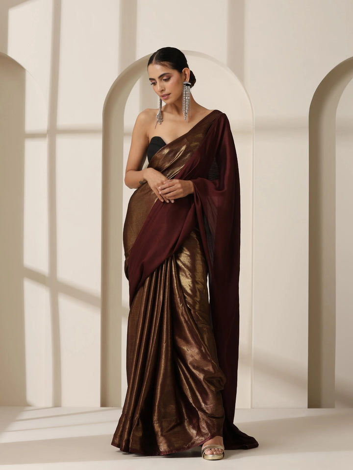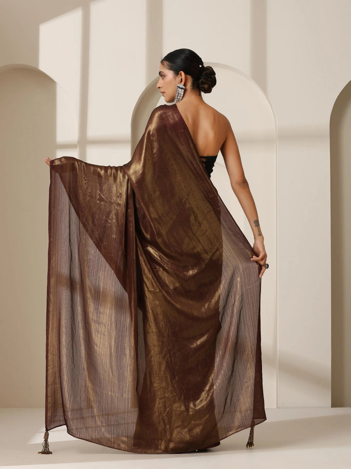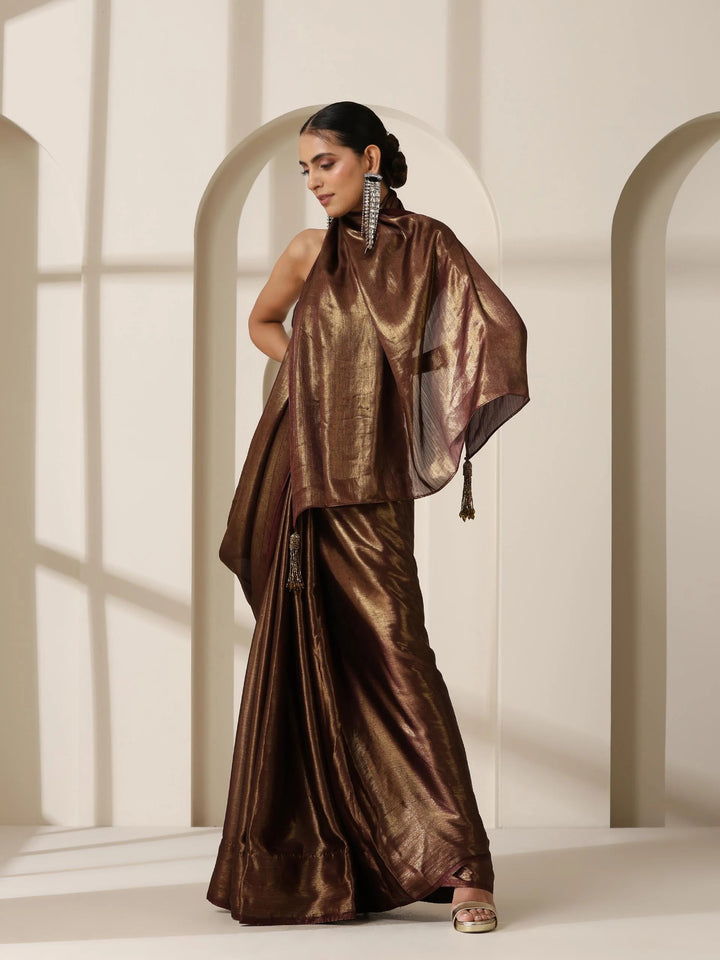 GOLD CHOCOLATE CHIFFON SAREE