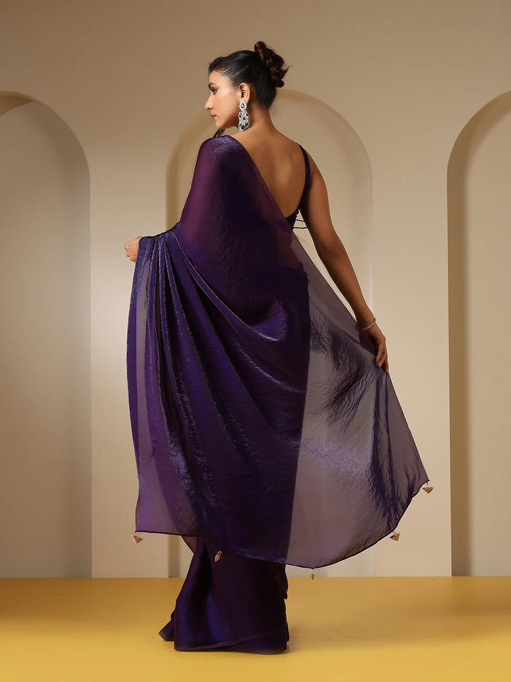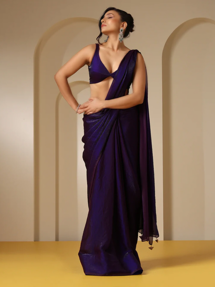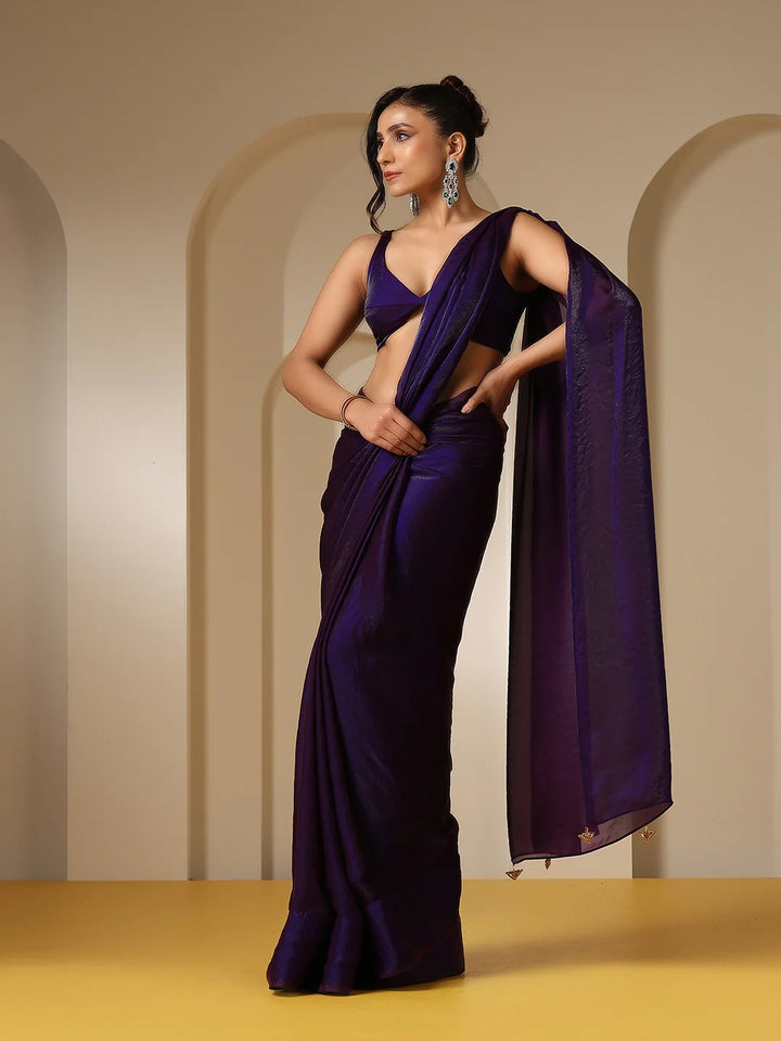 METALLIC PURPLE SATIN SAREE WITH SELF BLOUSE FABRIC