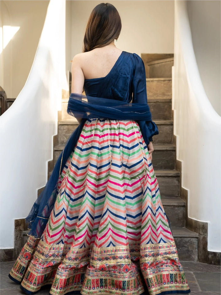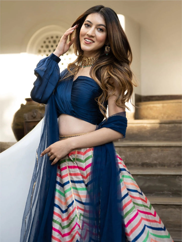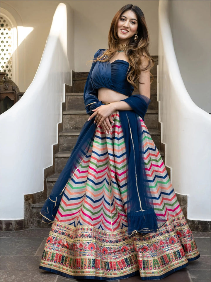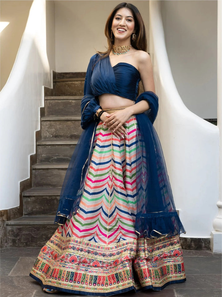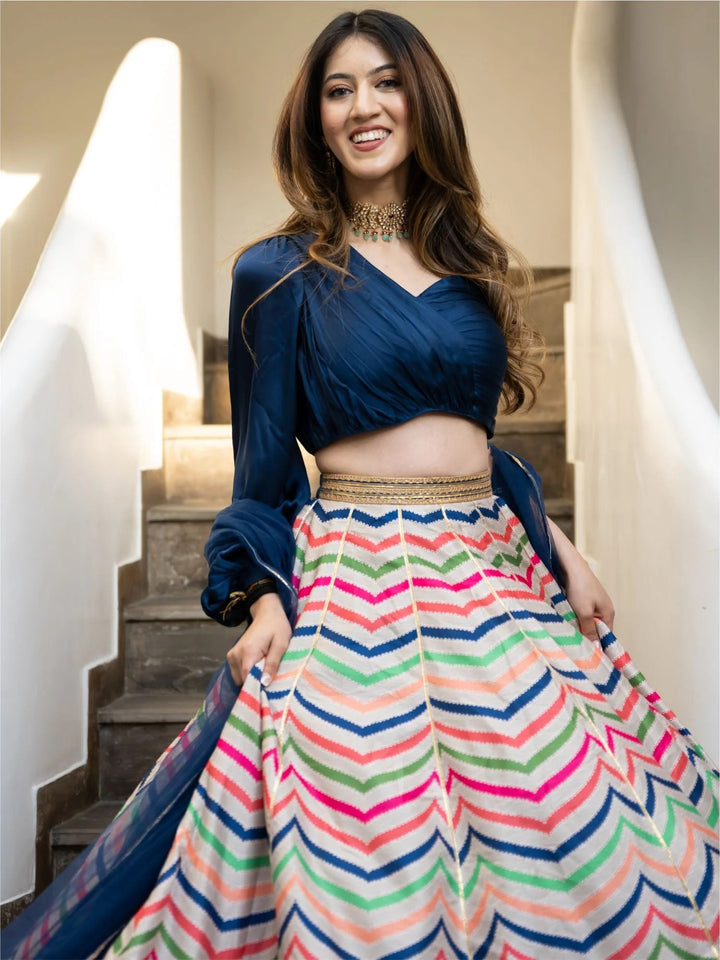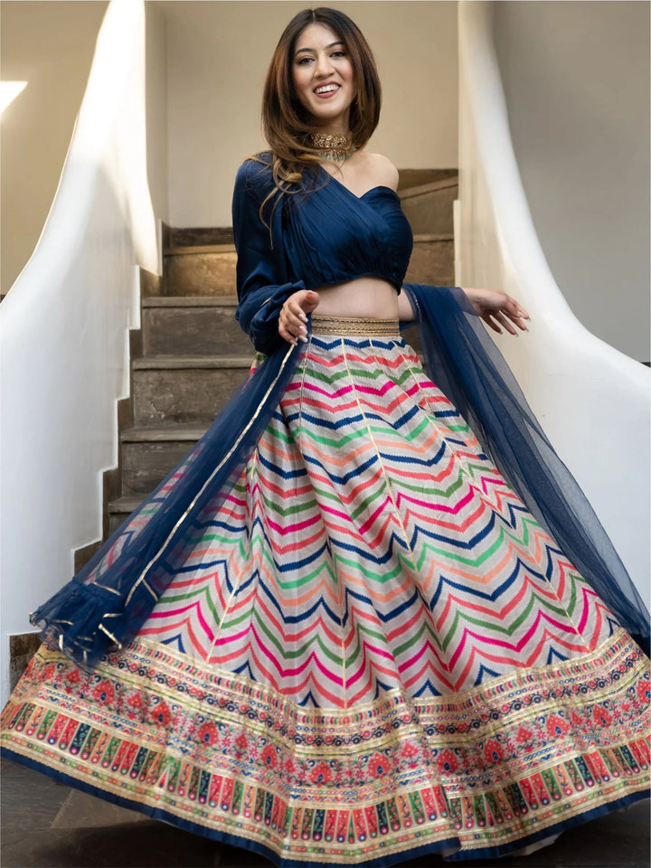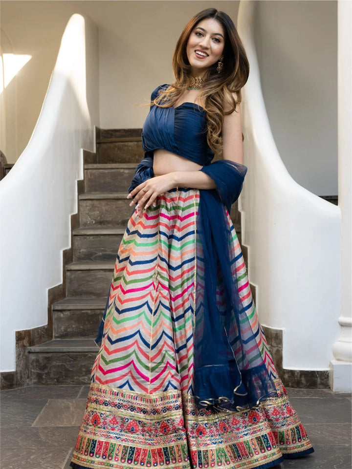 Step into a world of vibrant elegance with our Multicolored Printed Lehenga Set! This stunning ensemble blends tradition with contemporary flair, featuring a mesmerizing array of hues and intricate prints. The lehenga is a canvas of artistry, adorned with a burst of colors that dance in harmony, making it a visual delight. Paired with a complementing blouse and dupatta, this ensemble is a celebration of style and culture. Embrace the joy of fashion with our Multicolored Printed Lehenga Set, where every step is a statement and every twirl tells a story.