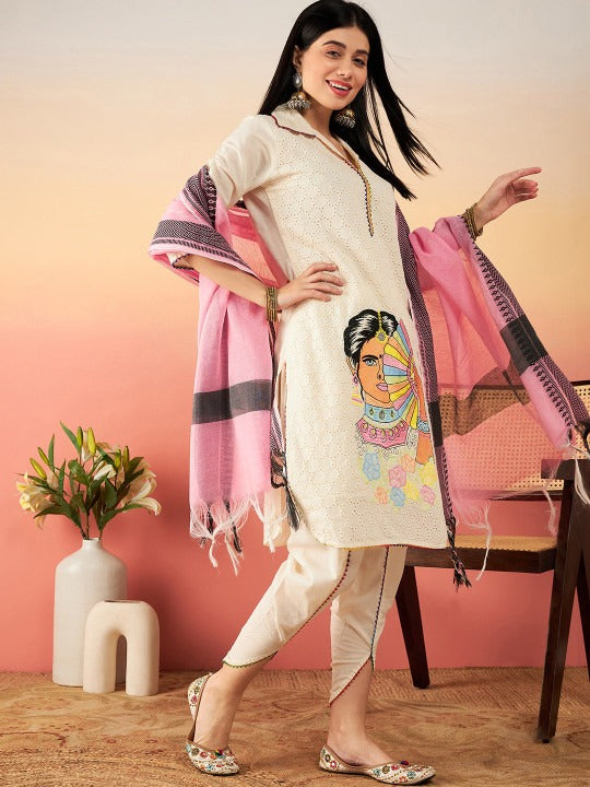 WHITE PURE COTTON FLORAL PRINTED REGULAR TUNIC