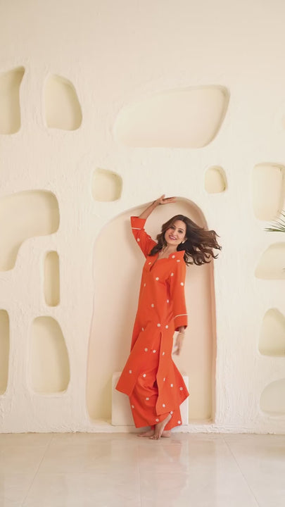 ORANGE WHITE EMBROIDERY CO-ORD SET