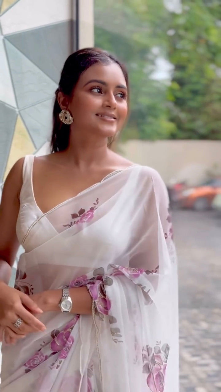 This elegant organza saree in a soft baby pink shade is designed to bring out a graceful and feminine look. Adorned with delicate floral digital prints and a finely detailed border, it is perfect for festive occasions, parties, weddings, or evening events. The saree comes with a matching unstitched blouse piece that can be tailored as per preference, offering versatility in styling. Crafted from lightweight and breathable organza fabric, it ensures both comfort and style. Best maintained with dry cleaning, this saree is an ideal choice for women who love modern charm blended with traditional elegance. Made in India with premium quality.
