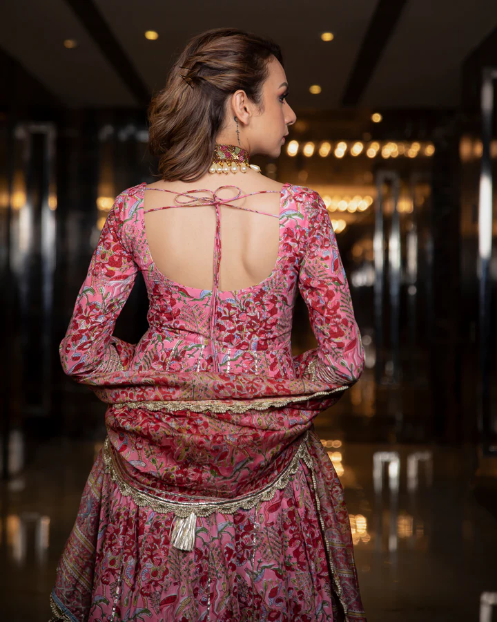 BANDHEJ PRINTED KAFTAN WITH SHARARA