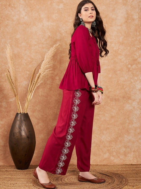RED EMBROIDERED TOP WITH PALAZZO CO-ORDS