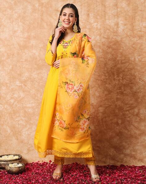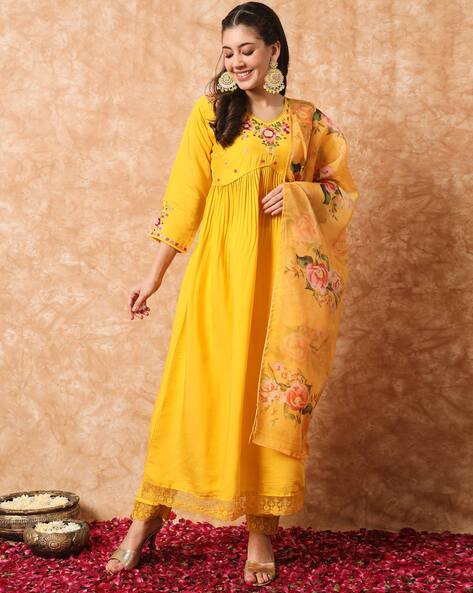 Embroidery Type: Thread & floral embroidery with multi-color detailing on neckline, yoke, and sleeves